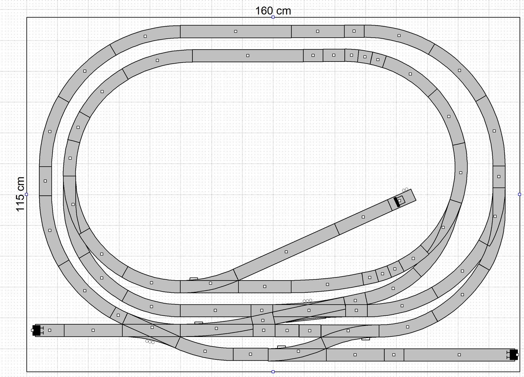 - Weichenstraßen zum Testen der Kupplungsübergänge z.B. bei nachträglich eingebauten stromführenden Kupplungen in Wagen oder Loks
